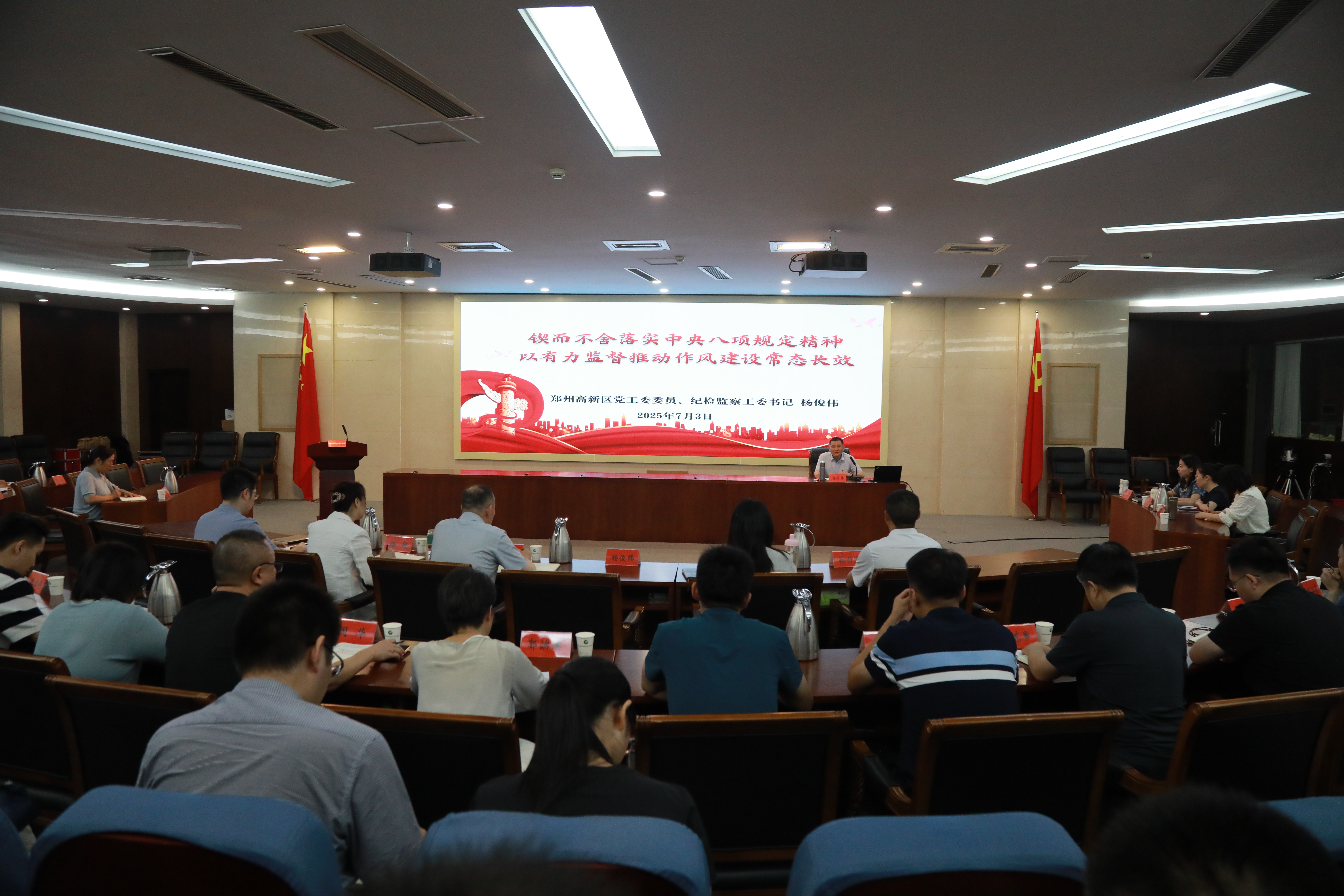在喜迎中国共产党成立104周年之际,为深入学习贯彻习近平总书记关于加强党的作风建设的重要论述和在河南考察时的重要讲话精神,扎实开展深入贯彻中央八项规定精神学习教育,7月3日,区党工委委员、纪检监察工委书记杨俊伟“锲而不舍落实中央八项规定精神以有力监督推动作风建设常态长效”为题,为全区纪检监察干部讲授专题党课。
