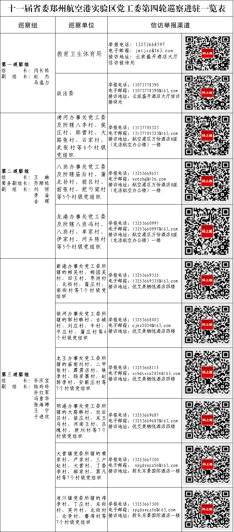 根据区党工委统一部署,近日,十一届省委郑州航空港区党工委第四轮巡察3个巡察组完成进驻,分别对政法委、教育卫生体育局等两个区直单位,清河、八岗、龙港等三个办事处党工委及所辖的16个村级党组织和新港、银河、龙王、明港、大营、洧川等六个乡(镇、办)选取的41个村级党组织开展常规巡察。