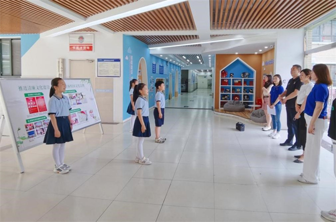 经开区纪检监察工委干部到经开区清廉学校示范点进行实地查看,督促学校加强清廉校园建设。现场观看了学生自创童谣、快板节目,并对学生以“小手拉大手”营造清廉家风提出相关建议。