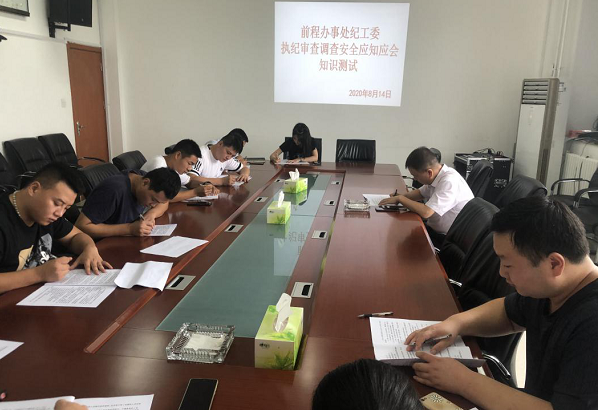 为进一步提升办案人员审查调查安全意识和安全防范能力,扎实做好“6-45”问题整改落实工作,近日,前程办事处纪工委组织了“执纪审查调查应知应会安全知识”测试,以考促学,以学敦行,确保执纪审查调查安全万无一失。