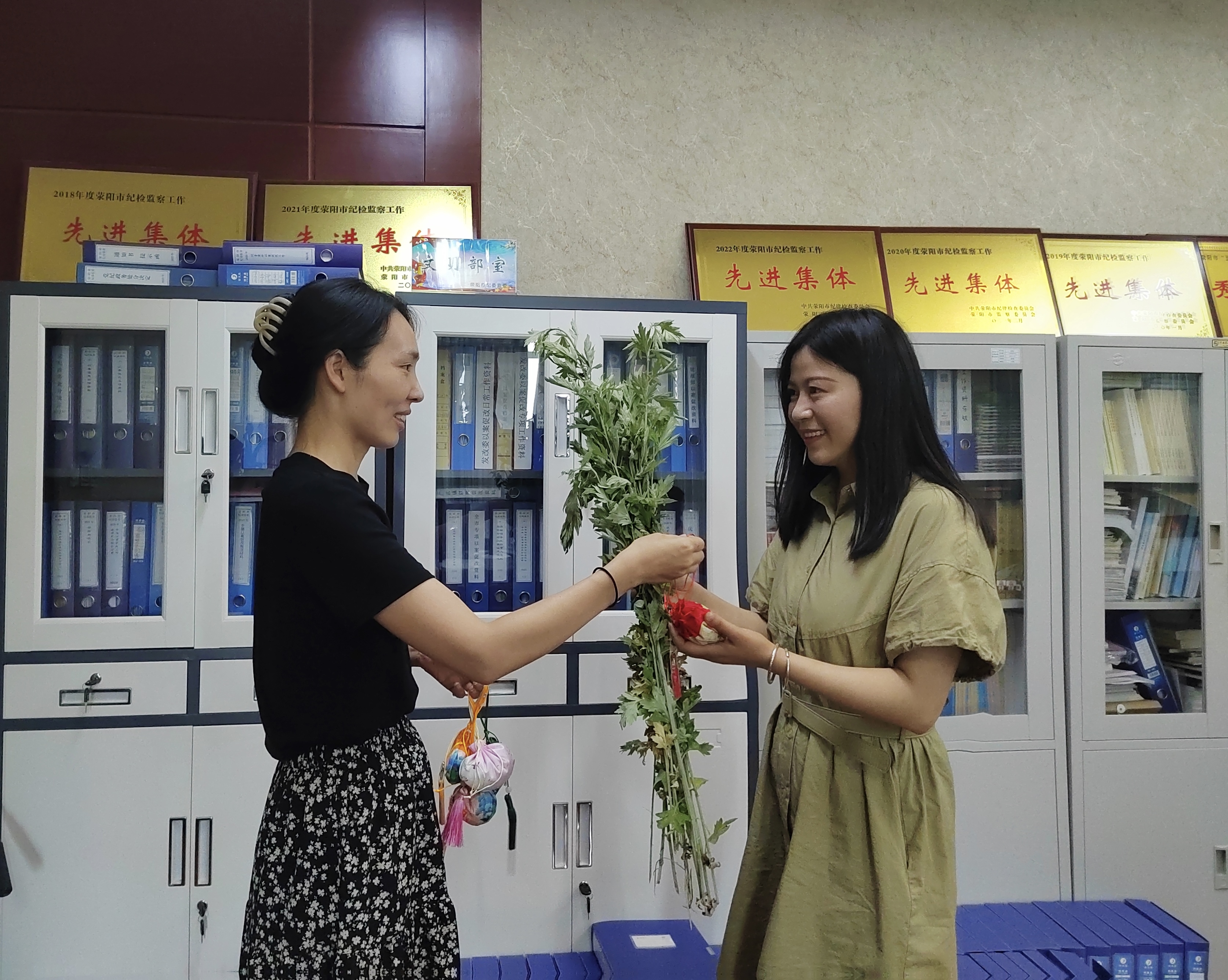 市纪委监委还为纪检监察干部送上香囊和艾叶,让大家在忙碌的工作中感受到一丝清凉和舒适。同时,在节日期间,市纪委监委紧抓廉洁教育,采取节前提醒、廉政谈话等方式,督促提醒党员干部弘扬“廉洁风”,绷紧“廉洁弦”,守住“廉洁关”,共同营造风清气正、崇廉尚洁的节日氛围。