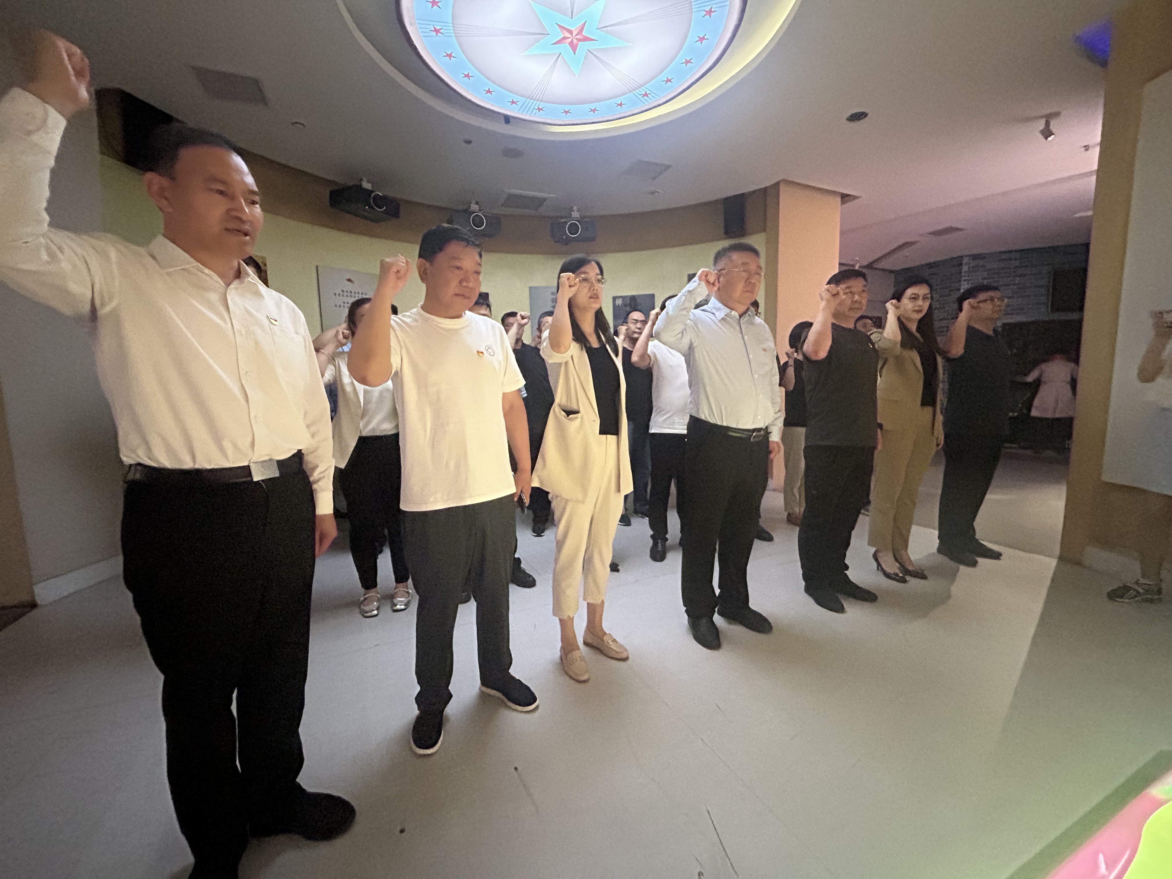 参观完毕后,大家面对鲜艳的党旗庄严宣誓,重温入党誓词,表达了矢志不渝跟党走、清正廉洁作表率的坚强决心。