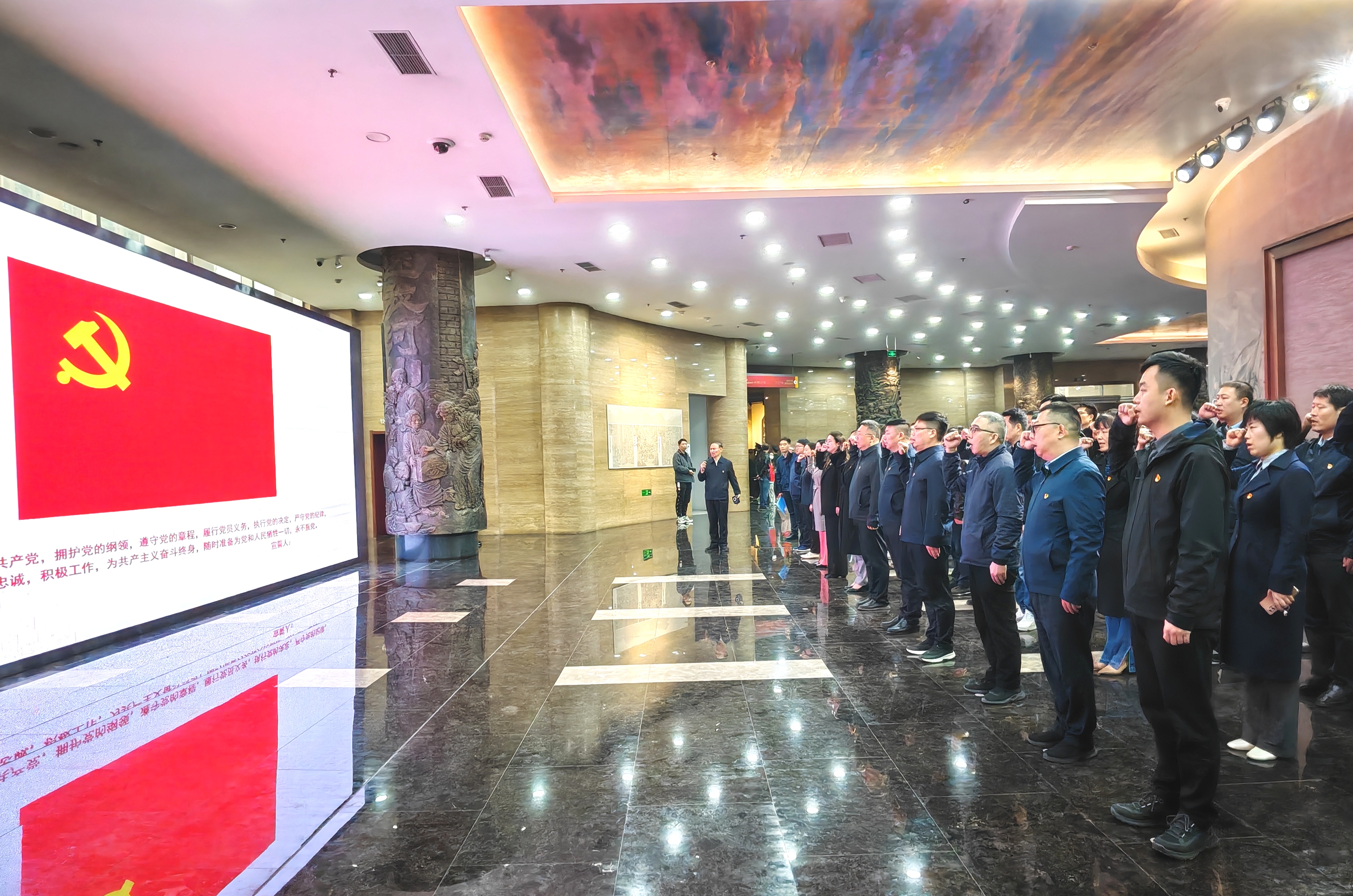 在烈士陵园纪念碑前,全体人员整齐列队,鞠躬致敬默哀,认真倾听和感受英烈们的英勇事迹和崇高精神,并向革命烈士纪念碑敬献花篮和鲜花,深切表达对革命先烈的深切缅怀和崇高敬意。随后,大家来到中原英烈纪念馆,在讲解员的讲解下重温了中国共产党艰苦卓绝的革命历程和中原儿女为民族解放、人民幸福而英勇奋斗的革命故事。参观完毕后,大家面向鲜艳的党旗,举起右手,庄严地重温入党誓词。铿锵有力的誓言在大厅内久久回荡,彰显着郑东新区纪检监察干部对党的忠诚与坚定信念。