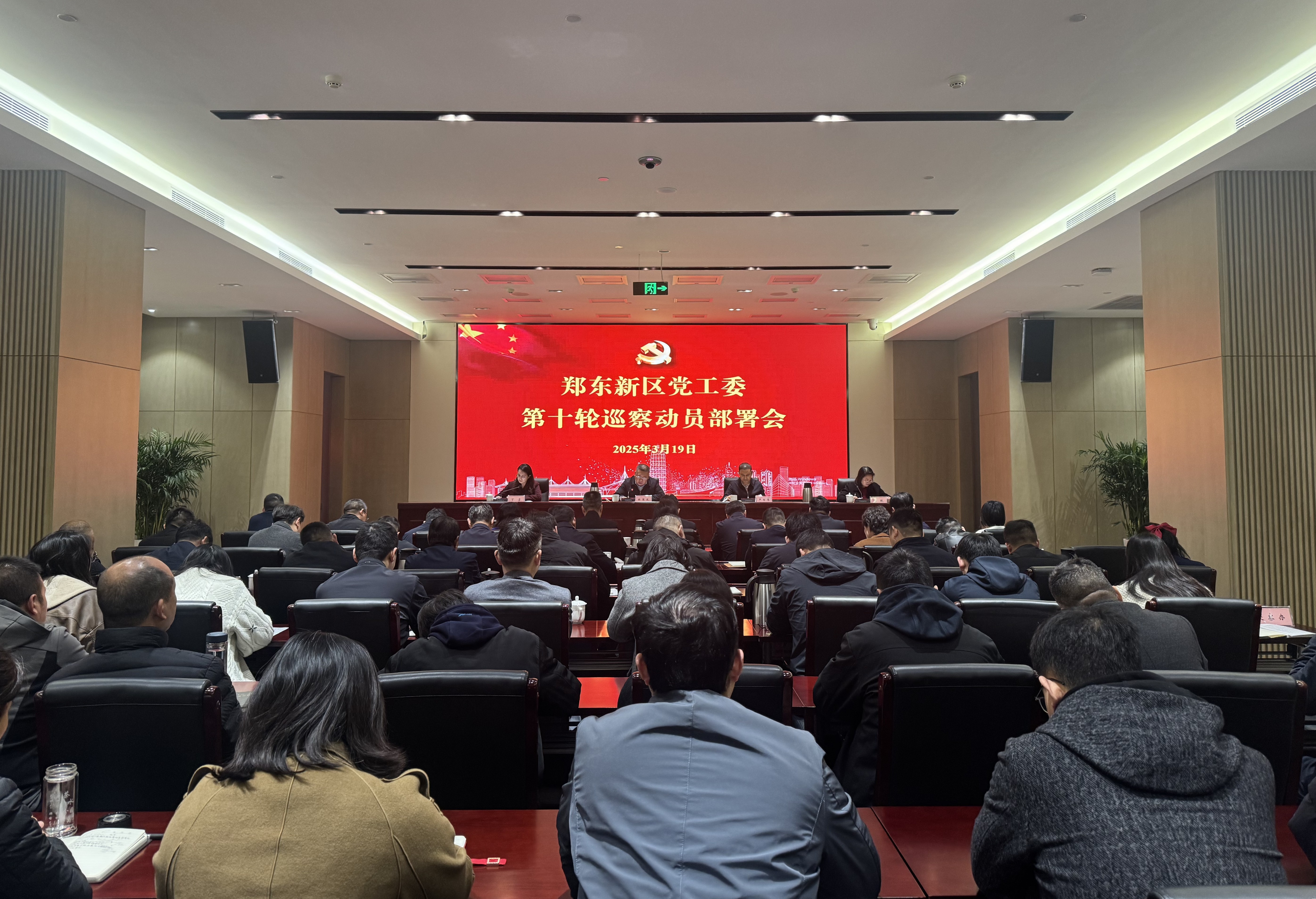 2025年3月19日上午,郑东新区党工委第十轮巡察动员部署会召开,明确本轮巡察共安排三个巡察组,其中一组按照省市区上下联动工作部署,开展殡葬领域突出问题专项巡察,另外两组对党政办党总支开展常规巡察,对金光路党工委、金光路办事处柳园口村党委、龙湖党工委、龙湖办事处新村党委、龙湖办事处小郭村党委、龙湖办事处魏庄村党委开展“回头看”。会议由区党工委巡察工作领导小组成员严书伟主持,区党工委委员、纪检监察工委书记、巡察工作领导小组组长杜国政出席会议并作动员讲话,领导小组成员丁洁传达省市区有关巡察工作会议精神,领导小组成员侯敏宣读第十轮巡察组组长、副组长授权任职及任务分工。