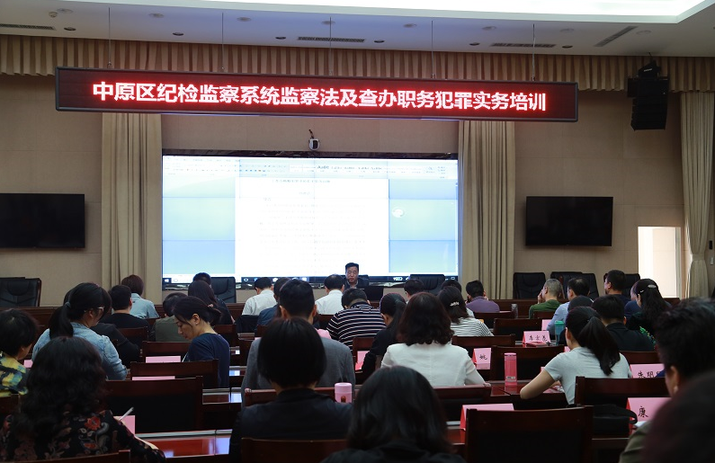 4月28日,中原区纪委举办监察法及职务犯罪实务培训班,为全区120余名纪检监察干部集中“充电”。